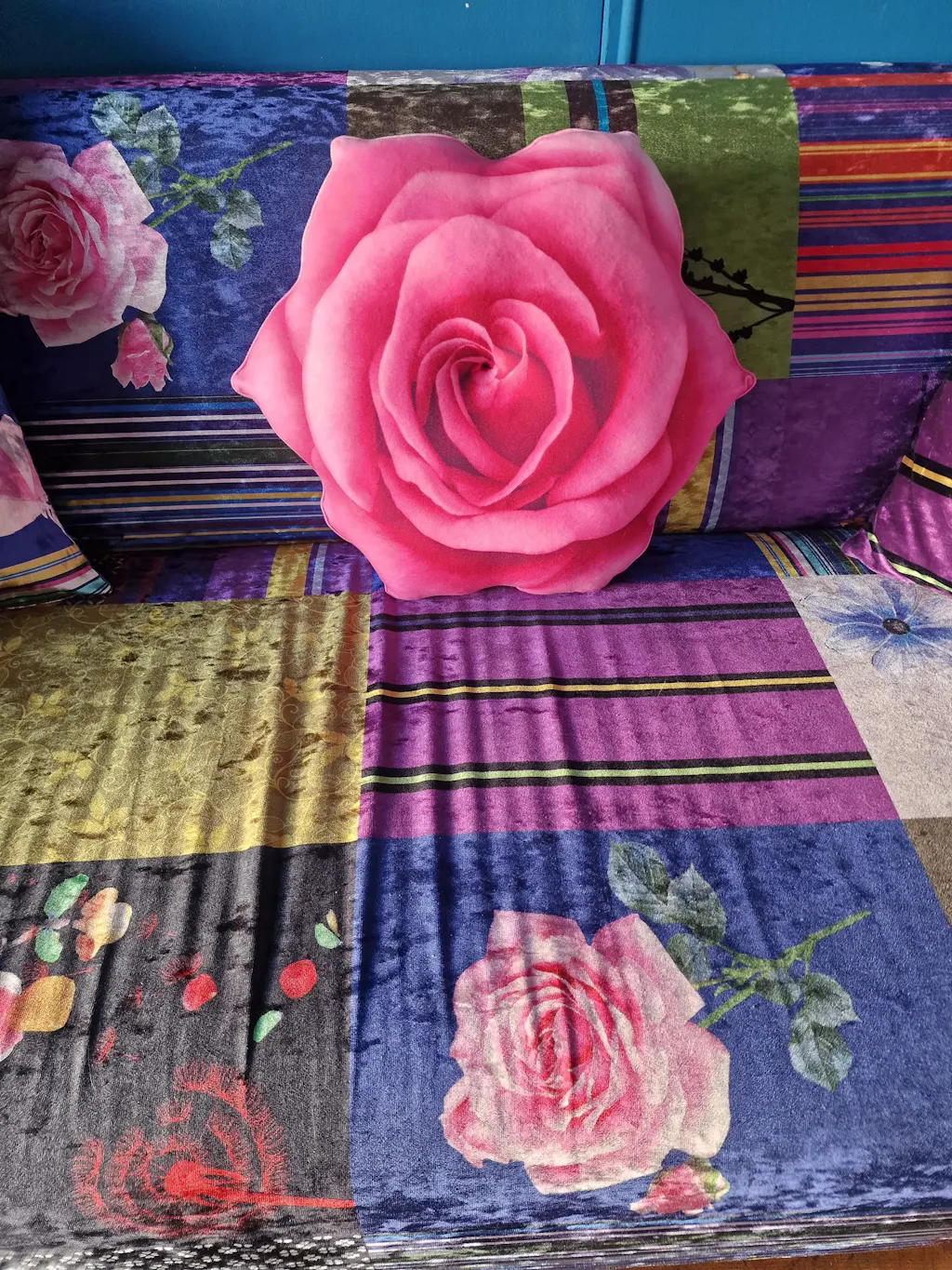 Von mir entworfen, hochwertig verarbeitet und bedruckt (beidseitig). Das Kissen ist bequem und hat eine unregelmäßige, von Rosen inspirierte Originalform.
