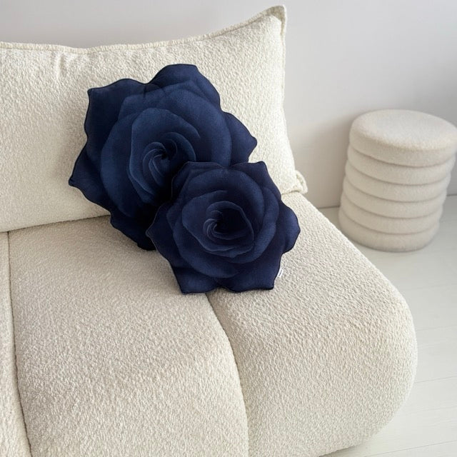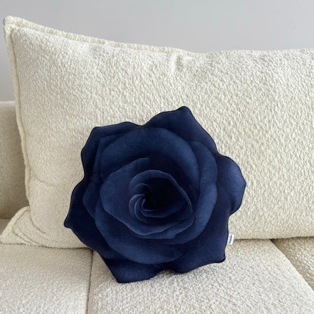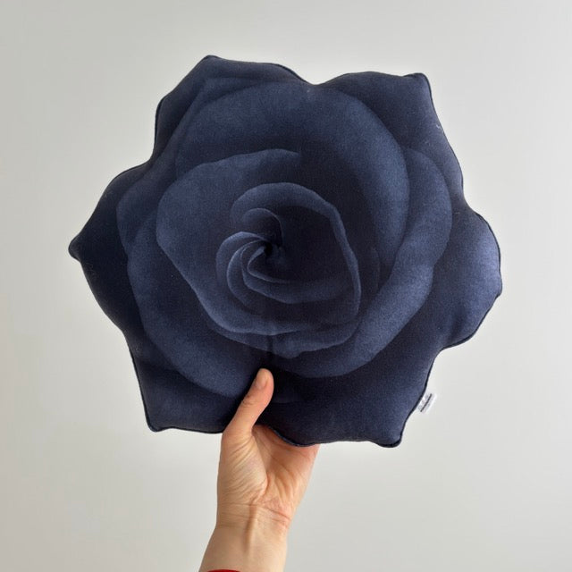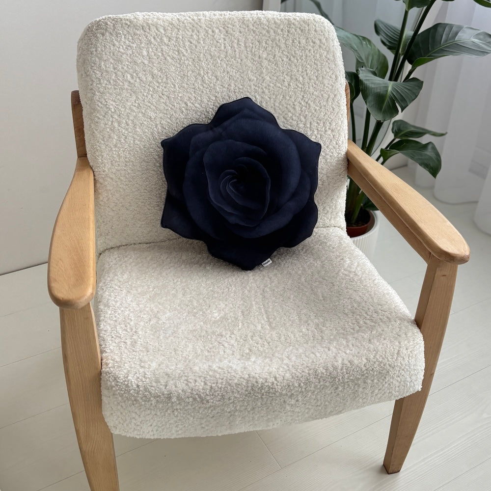 Das Black Rose Kissen in Form einer zarten Rose in einem eleganten, tiefen Schwarzton ist eine raffinierte und stilvolle Ergänzung für jedes Interieur. Es verleiht modernen Räumen einen einzigartigen Charme und ist ein auffälliges Dekorationsstück.