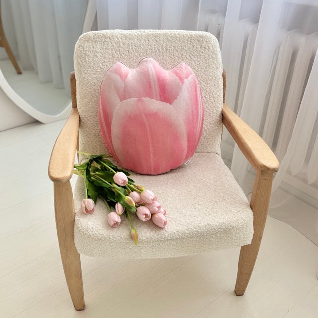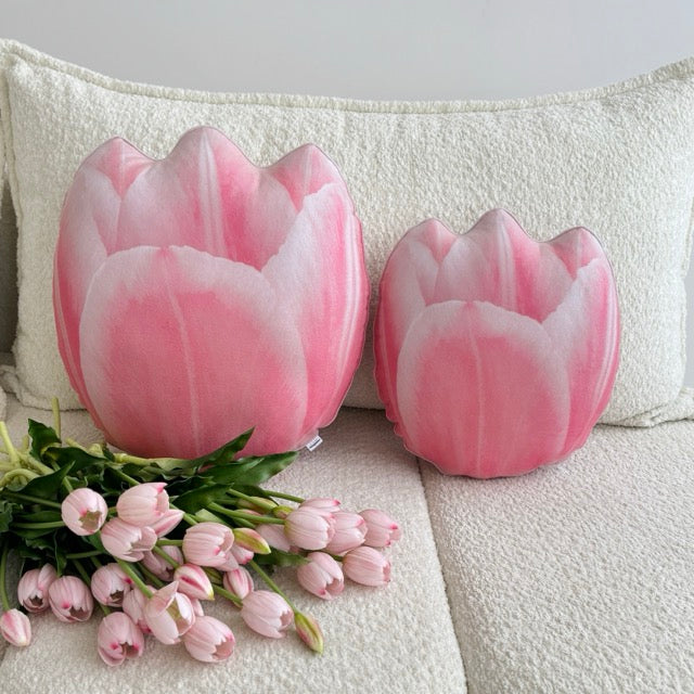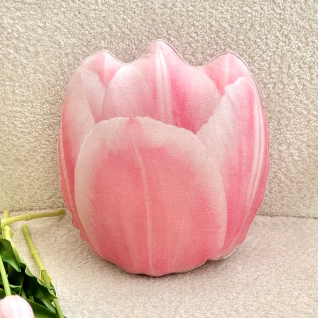 EnjTulip Flower Pillow – Light Pink with Soft Highlights (Large Version) This tulip-shaped pillow in a delicate light pink color is a stunning spring-inspired addition to any interior. Its soft, elegant design brings charm and style to any room. -Dimensions: Large pillow with dimensions similar to a standard cushion: 44 cm (length) x 40 cm (width). - Perfect for: A unique spring decoration or a thoughtful birthday gift for flower and plant lovers. The pillow beautifully replicates the natural shape of a tulip flower. -Material & Design: - Made from soft, plush-like polyester fabric, ensuring a cozy and comfortable feel. - Double-sided design with a high-quality, precision print that creates a stunning 3D effect.(Petals are printed, not separate pieces.) - Oeko-Tex certified fabric, making it safe even for children. - Plush, resilient, and pleasant to the touch. - Color-accurate print on all sides, designed to maintain shape and vibrancy even after washing. Filling: Hypoallergenic silicone fiber filling, ensuring comfort and long-lasting fluffiness. Color: A soft, light pink shade with gentle highlights, mimicking the natural appearance of a tulip for an elegant, fresh, springtime look. 100% Polish Product Designed and handmade exclusively by us. Who is it for This light pink tulip pillow is a versatile and eye-catching décor piece that will surely become a favorite element in your home. It also makes a perfect gift for any occasion. Eco-friendly Packaging: All pillows are beautifully and sustainably packaged in eco-friendly decorative wrapping. Washing Instructions: Washing this tulip pillow is easy! Since it does not have a removable cover, simply wash the entire pillow. - Machine wash or hand wash at 30°C (86°F) on a delicate cycle. - Air dry naturally for best results. Add a touch of spring to your home with this charming tulip pillow!